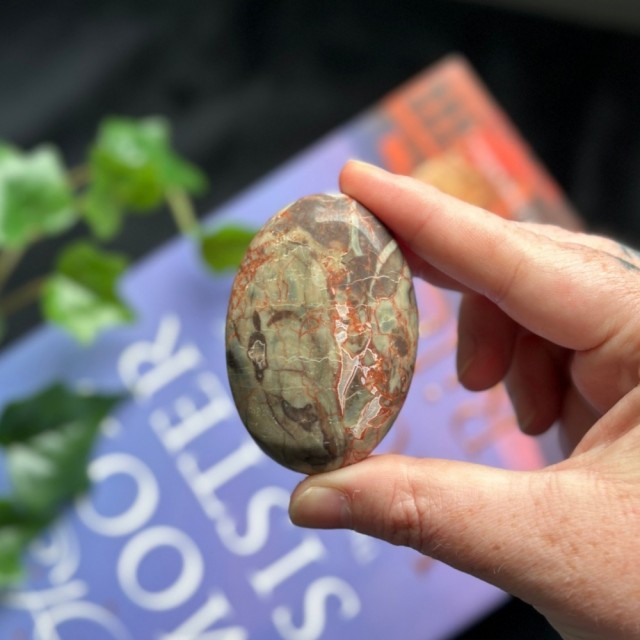 Money Agate/Indonesisk Blodstein håndstein. Denne er 6,2x4,2x2,3cm og veier ca 87g. OBS: Naturlige groper og merker forekommer. Det er den krystallen på bildene du får hvis du bestiller denne.