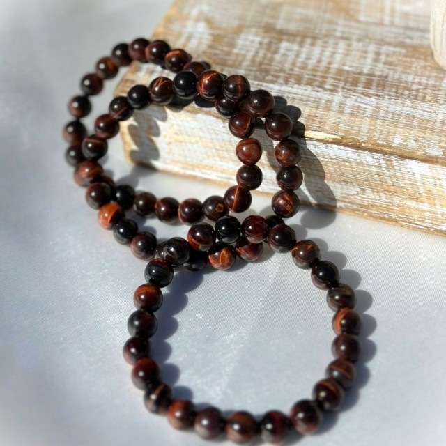 Okseøye, også kalt Rød Tigerøye, vekker indre styrke, mot og vitalitet. Dette 8mm armbåndet på ca. 16-17cm gir jordende kraft, selvtillit og utholdenhet - en ildfull amulett som tenner gnisten i deg.