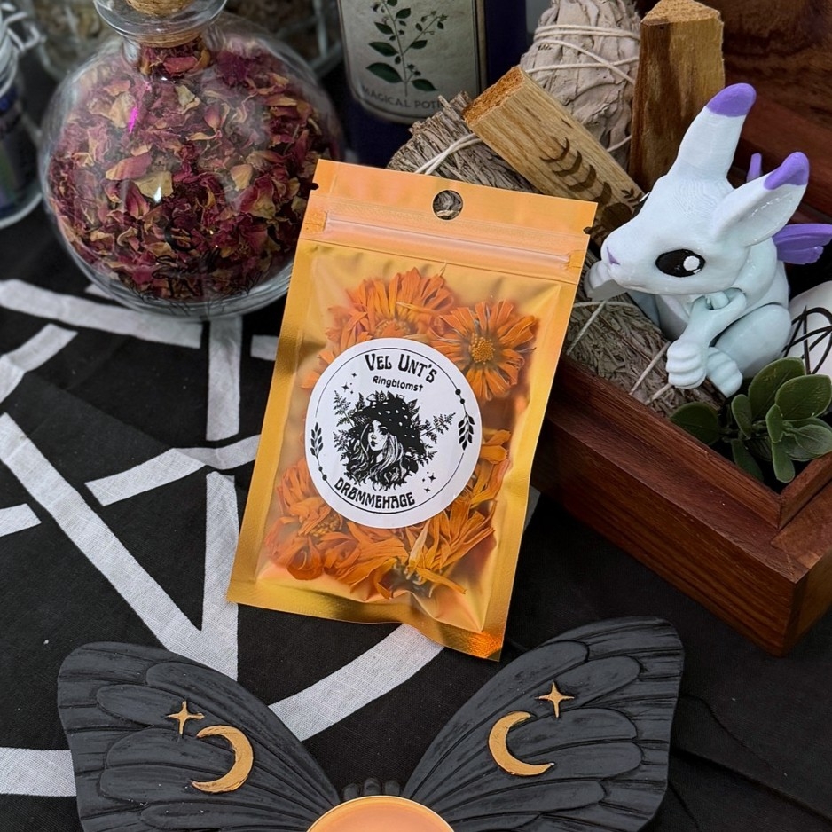 Ringblomst er en solbåret urt med lange tradisjoner i europeisk folkemedisin og magisk praksis. Den har sitt opphav i Sør og Mellom-Europa men har gjennom århundrer funnet sin plass i klosterhager, bondehager og heksehager over hele kontinentet. Med sine klare, gyldne blomster har ringblomst alltid vært sett på som en plante for livskraft, beskyttelse og helende energi.