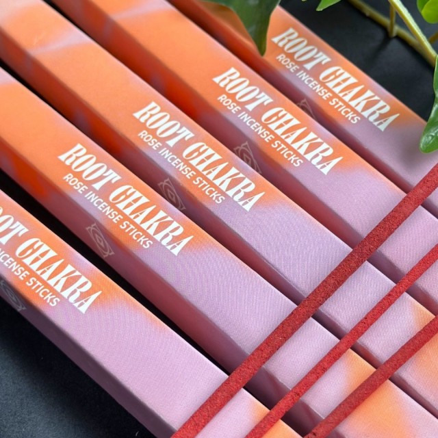 Denne røkelsen forener den dype kraften i rotchakraet med den myke, kjærlige duften av rose. En duft som både beroliger og forankrer – og som minner deg på at du er trygg, elsket og dypt forbundet med alt levende.
