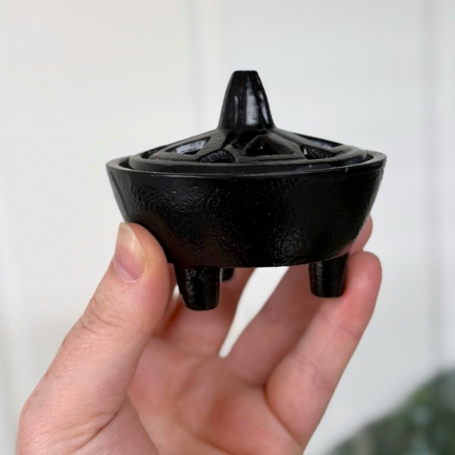 Den solide konstruksjonen i jern gjør den perfekt som røkelsesbrenner for resin, urter og røkelseskjegler. Lokket gir et mystisk uttrykk samtidig som det lar røyken sive rolig ut og skape en helt egen stemning i rommet.