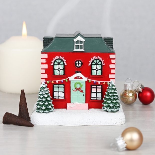 Denne bedårende røkelsesbrenneren i et rødt julehus vil garantert glede deg denne sesongen. Plasser en røkelseskjegle inni den og se hvordan røyken kommer ut av et par små skorsteiner.
