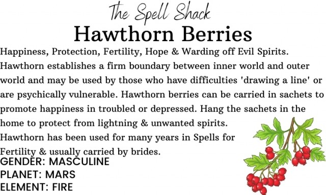 ♥Hagtornbær kan bæres i poser for å fremme lykke i urolige eller deprimerte perioder.
