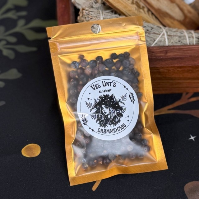 I denne pakken får du ca 14-18g tørket einebær.