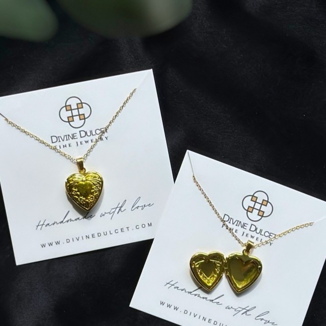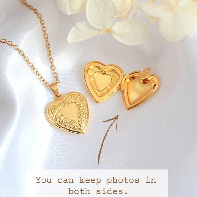 Løft stilen din med denne fortryllende hjerteformede medaljonghalskjedet, designet for den moderne kvinnen som verdsetter sentimental eleganse. Dette fantastiske smykket har to rom, perfekt for å holde favorittbildene dine eller små meningsfulle gaver nær hjertet ditt. Medaljongen lukkes sikkert og åpnes uanstrengt, og kombinerer praktisk bruk med eleganse. Håndlaget av 18 karat gullbelagt rustfritt stål, utstråler dette halskjedet luksus samtidig som det sikrer varig holdbarhet. Det er hypoallergenisk, nikkelfritt og motstandsdyktig mot vann og hverdagsbruk, noe som gjør det til det ideelle tilbehøret for enhver livsstil.