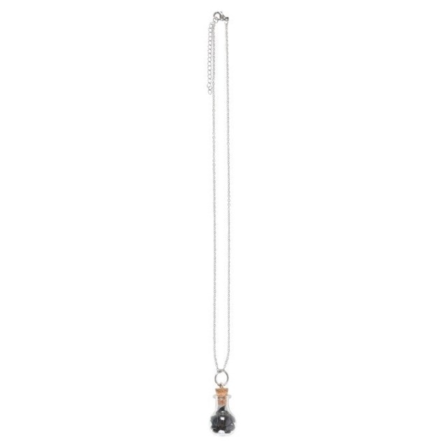 Dette stemningsfulle halskjedet er utformet som en liten potion-flaske fylt med naturlige obsidian krystallchips - en krystall som lenge har vært forbundet med beskyttelse, stabilitet og jordende energi.