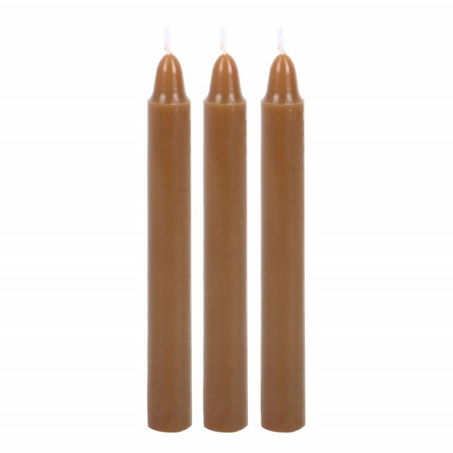Pakke med 12 brune stavelys for bruk med ritualer for jording, styrke og stabilitet.