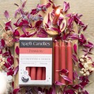 Pakke med 12 lyse røde stavelys for bruk med ritualer for å tiltrekke lidenskap og kjærlighet.