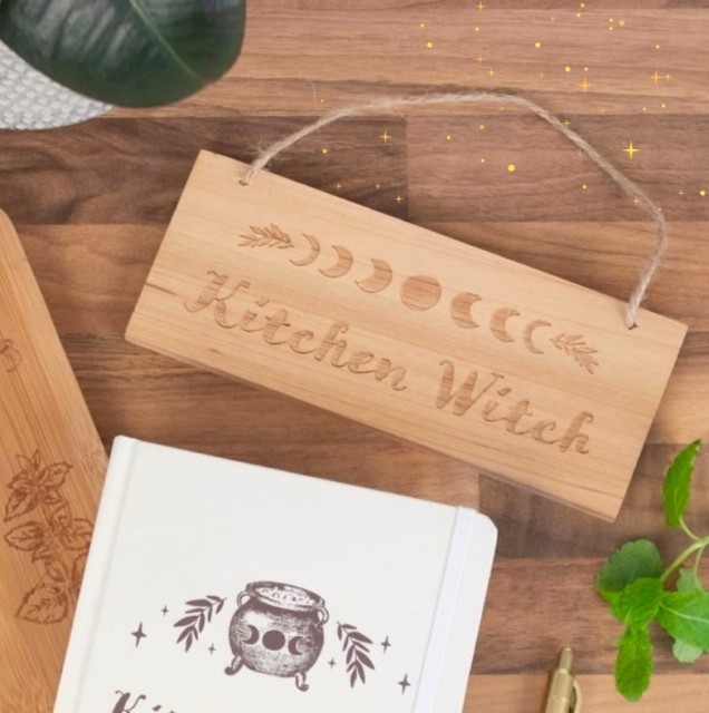 Kjempe kult hengeskilt med Kitchen Witch gravert på seg!