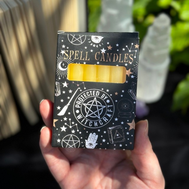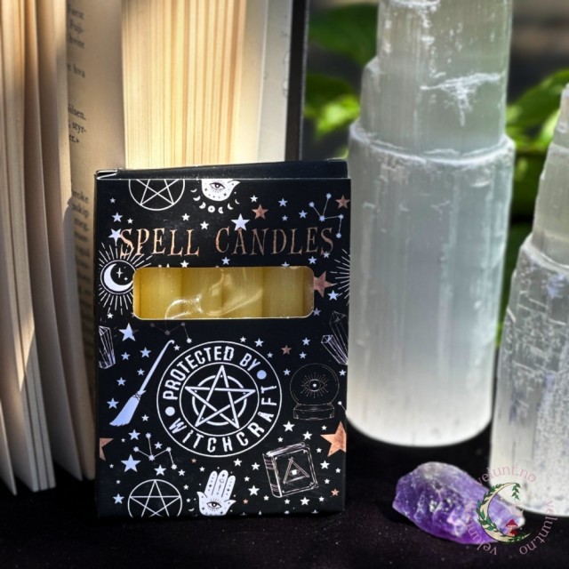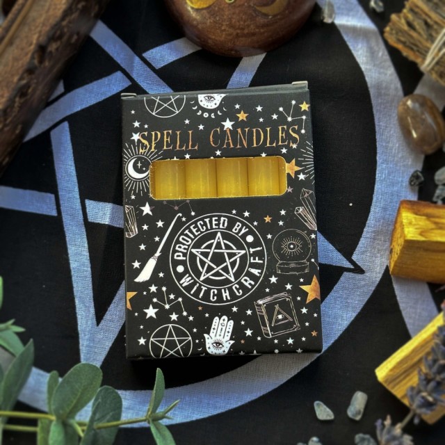 Yellow Spell Candles - Gule Stavelys er perfekte for spells som er ment til å øke visualiseringsevnene. Gult er også fargen på selvtillit, intelligens og suksess. Selges i pakke med 6 stk.