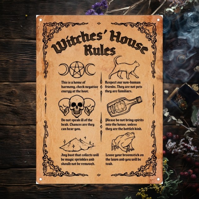 Søk etter "witches house rules mini metall skilt" returnerte 100 treff
