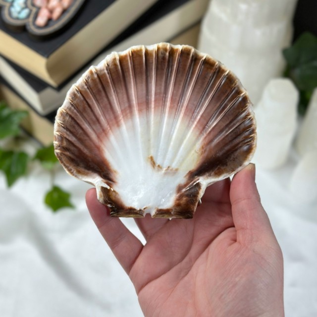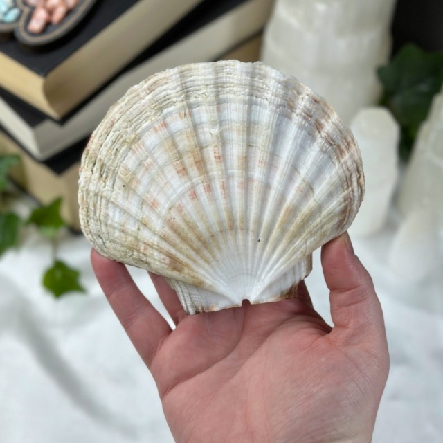 Et ekte kamskjell fra Tysvær, Norge – for deg som ønsker å bringe havets magi inn i hjemmet ditt. Perfekt til smykker, røkelse eller alterdekor. Denne er plukket fra Tysvær i Norge. Størrelsen er ca 13,2x11,3cm. Denne er flat i formen.