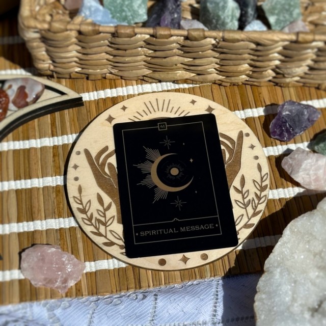 Dette nydelige runde brettet er perfekt for å plassere ditt dagens tarot- eller orakelkort på, og vil gi deg en ekstra dimensjon til din tarotlesning.