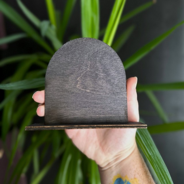 Vår unike og håndlagde bilde stand er det perfekte tilbehøret til å pynte opp din kommode, hylle, nattbord, altarbord osv på en stilig måte. Laget av bjørk materiale og behandlet med en dyp svart oljebeis, vil dette produktet garantert skille seg ut i ethvert interiør. Med sin enkle og moderne design, vil denne bilde standen være en unik pynt i hjemmet ditt.