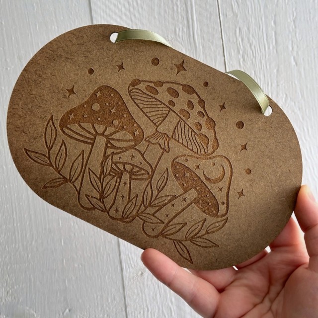 Det kan vise noen trefeil eller mørkere flekker for laserkuttet arbeid.