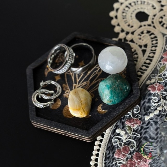 Vel Unt's Smykkefat - det perfekte tilbehøret for å organisere dine smykker, ringer og små favoritt krystaller. La dette smykkefatet være din trofaste følgesvenn i å holde dine smykker & krystaller organisert og trygge. Bestill ditt fat i dag! Mer info:
