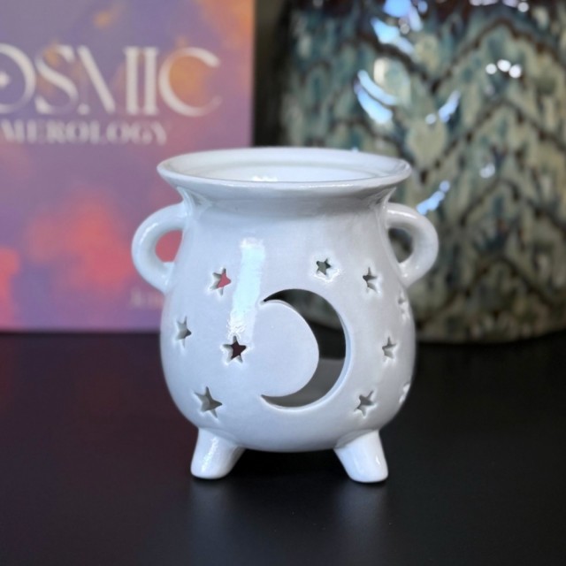 Den hvite keramikken gir et rent og tidløst uttrykk som passer inn overalt, samtidig som den gir en subtil magisk vibe. Når lyset tennes, danser flammen gjennom månen og stjernene og skaper et varmt og levende lysspill.